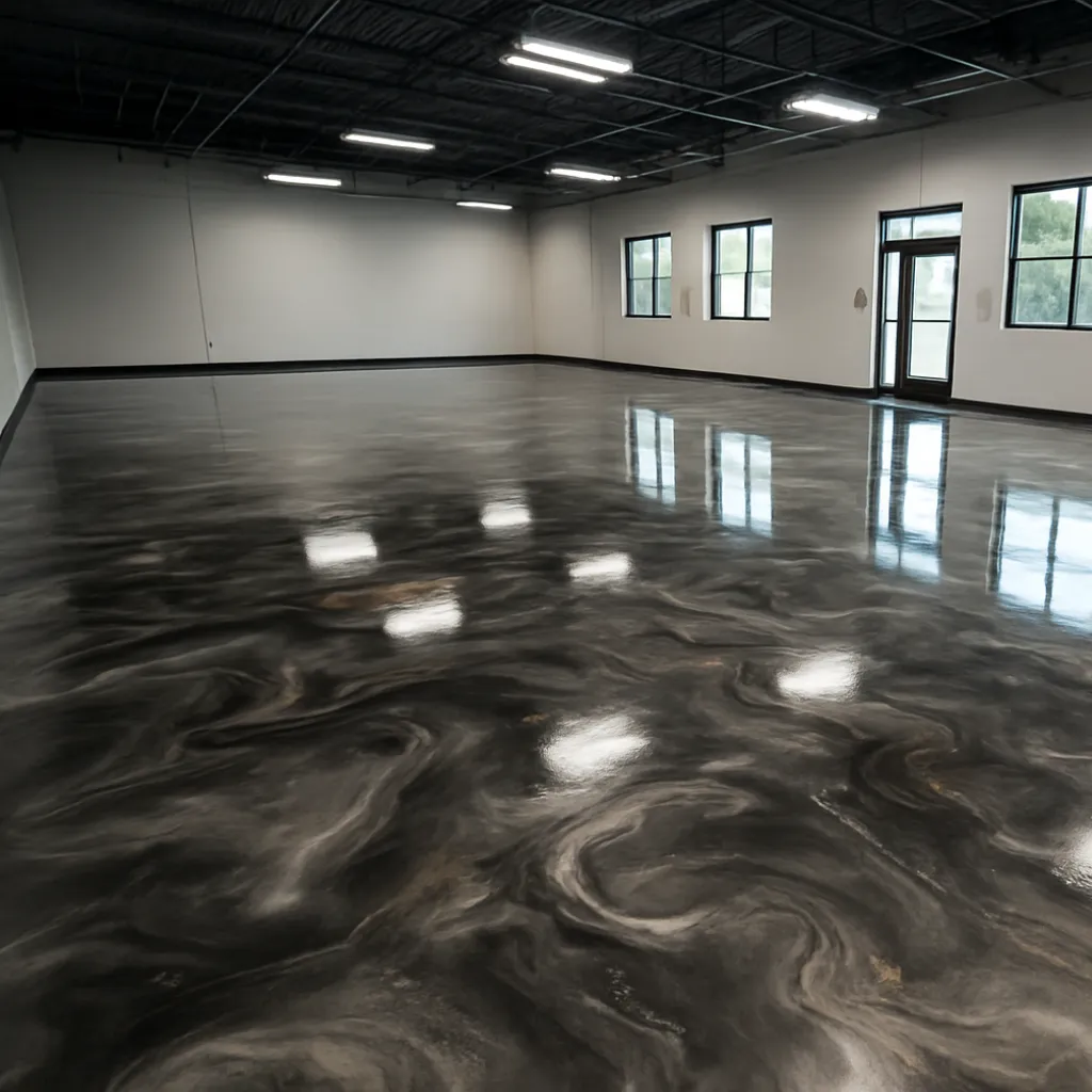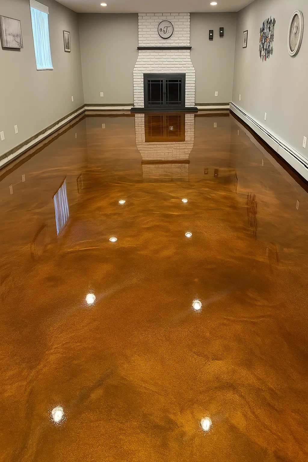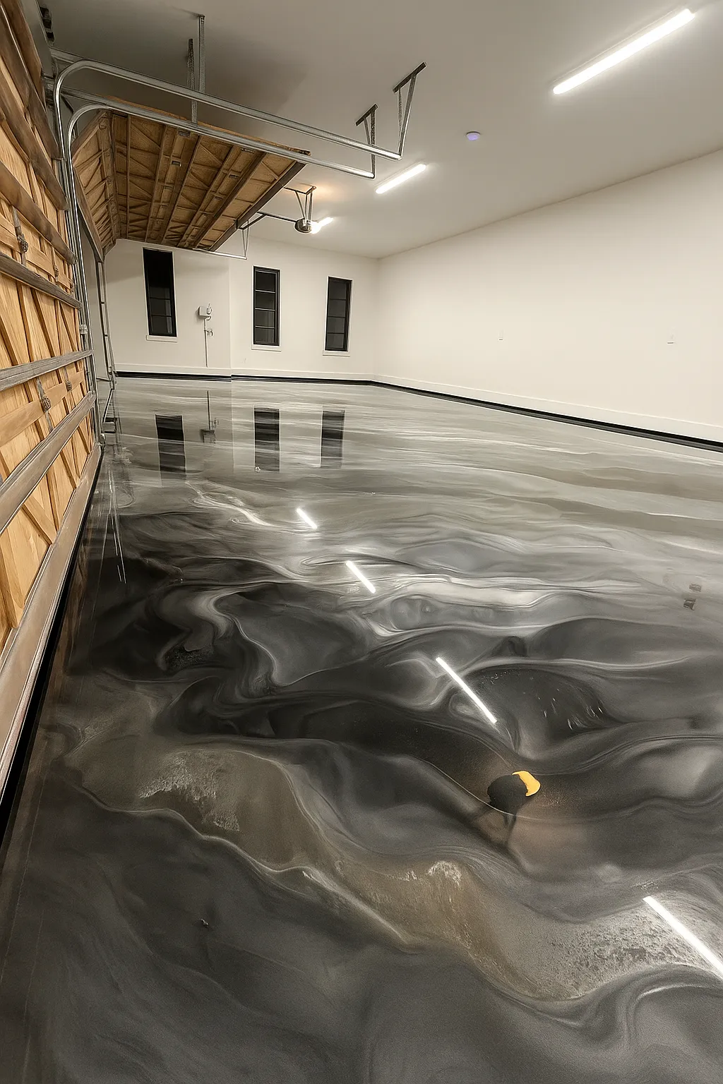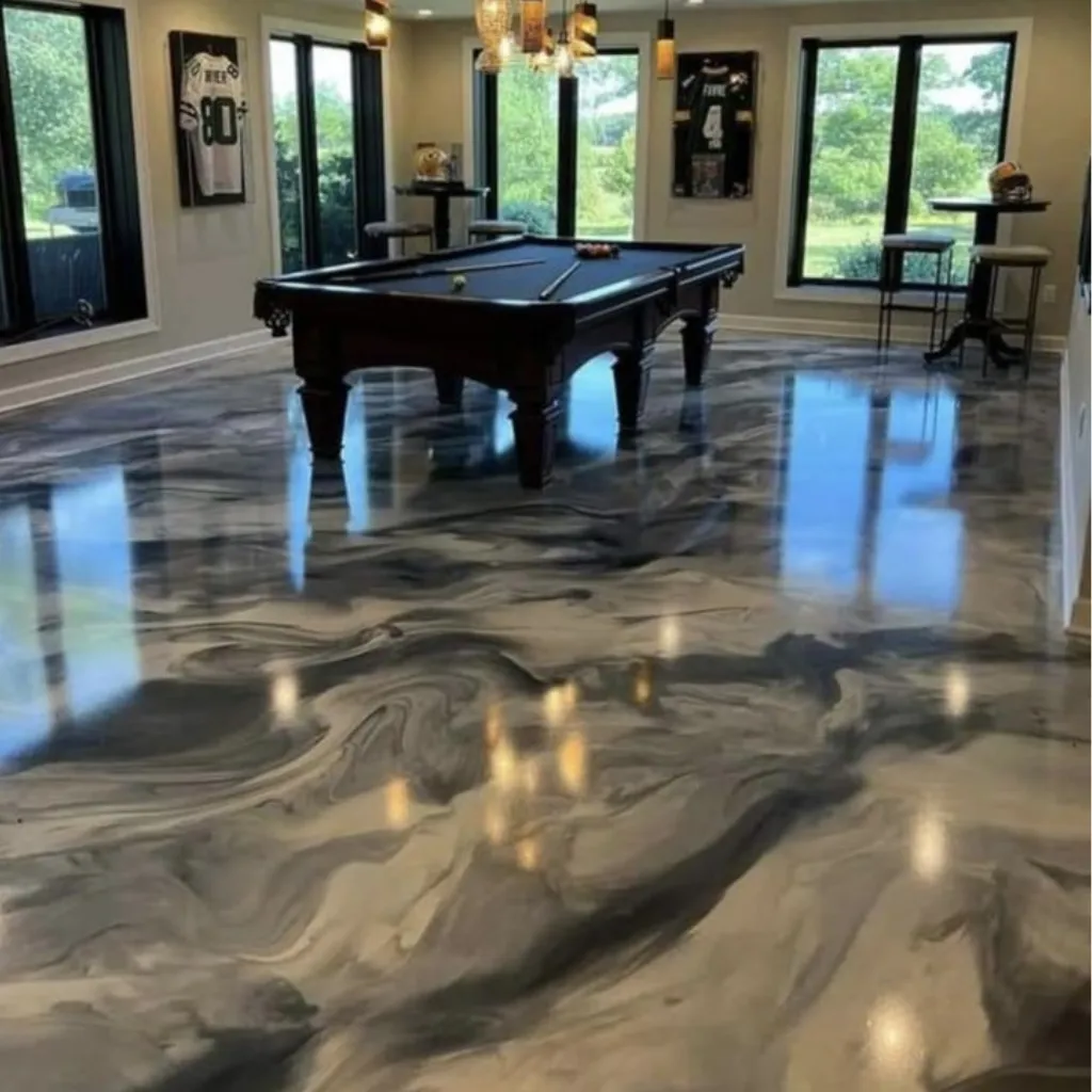 Choose metallic marble epoxy for a floor that combines art and strength. With its unique 3D patterns and glossy finish, this coating adds elegance to any space while delivering the durability and easy maintenance your home